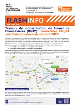 Travaux de modernisation du tunnel de Chennevières (RN12) : Fermetures 24h/24 sens Paris-Province en octobre 2025