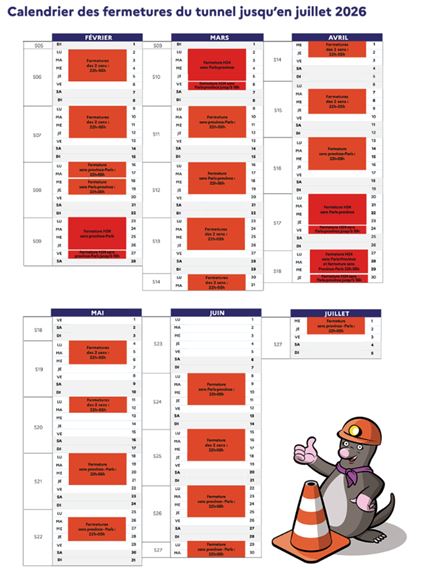 Les fermetures nocturnes (22h-05h) sont quant à elles maintenues en fonction du calendrier en pièce jointe.